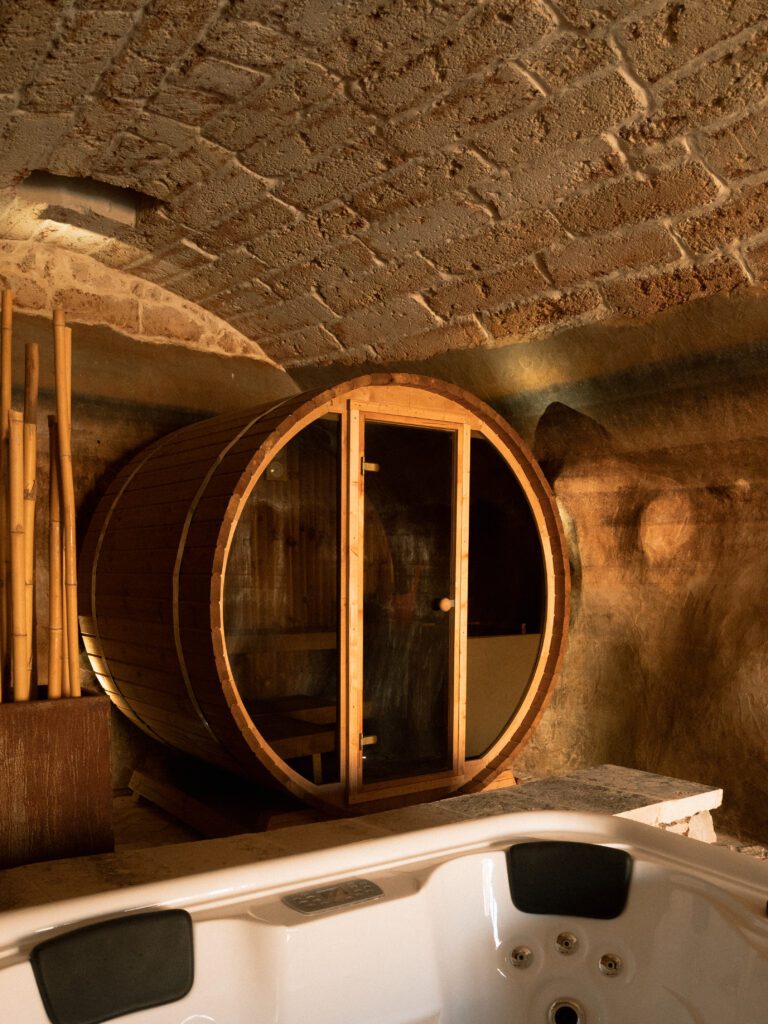 Our retreat is held at a traditional Puglia farmhouse, located just 40 minutes from Brindisi Airport. This welcoming space features a swimming pool, a SPA in a cave with jacuzzi and sauna, comfortable rooms, a wine cellar, a dedicated yoga studio with pool views, a unique sound tree installation for the soundbath, and peaceful outdoor gardens perfect for yoga, dining, relaxing, or star-gazing; everything you need to feel at home and unwind in comfort